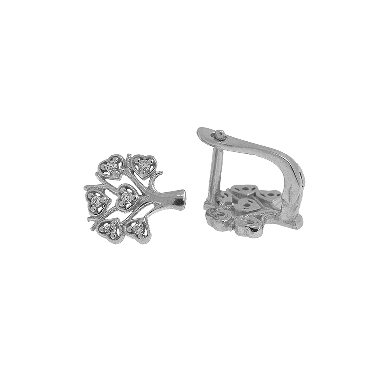 Family Tree Silver Earrings with Zirconium
