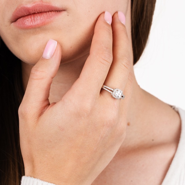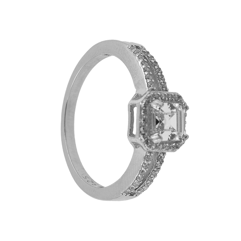 Ring Made of Silver with a Large Zirconium Stone in the Shape of a Square