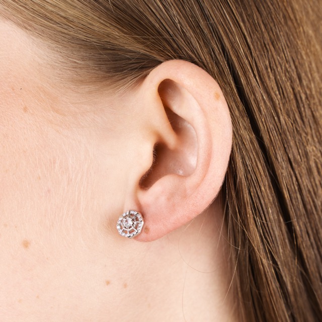 Silver Earrings Circles with Zirconium