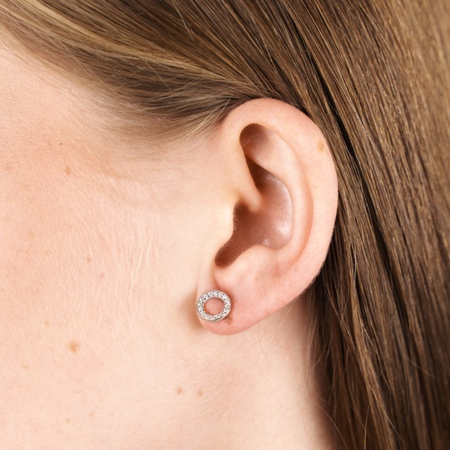 Silver Earrings Circles with Zirconium