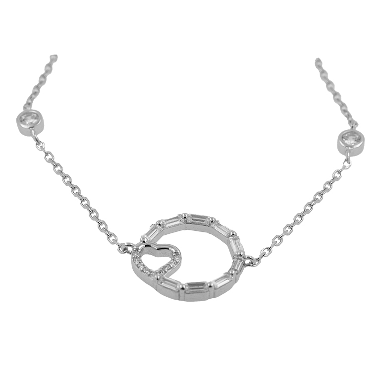 Silver Bracelet with Heart Insert in Cruze with Zirconium