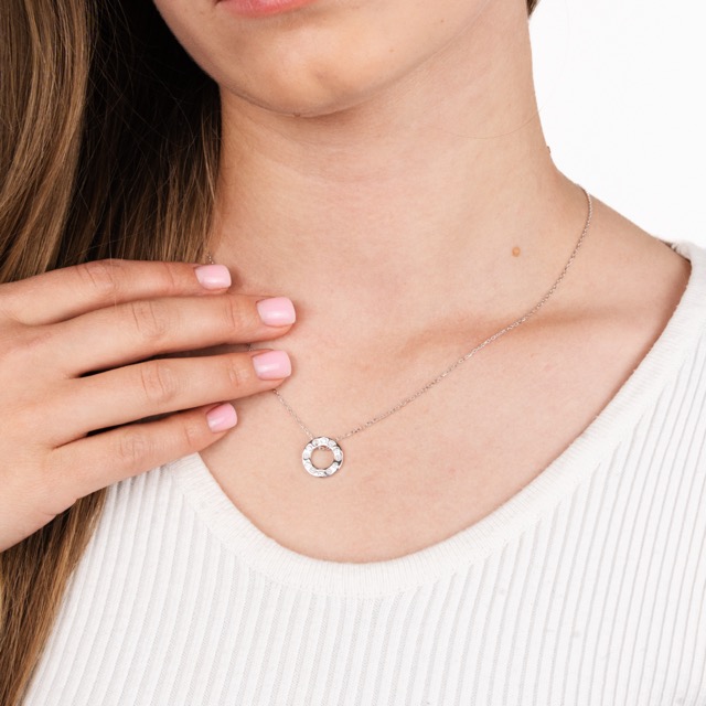 Silver Chain with Circle Pendant and Zirconium