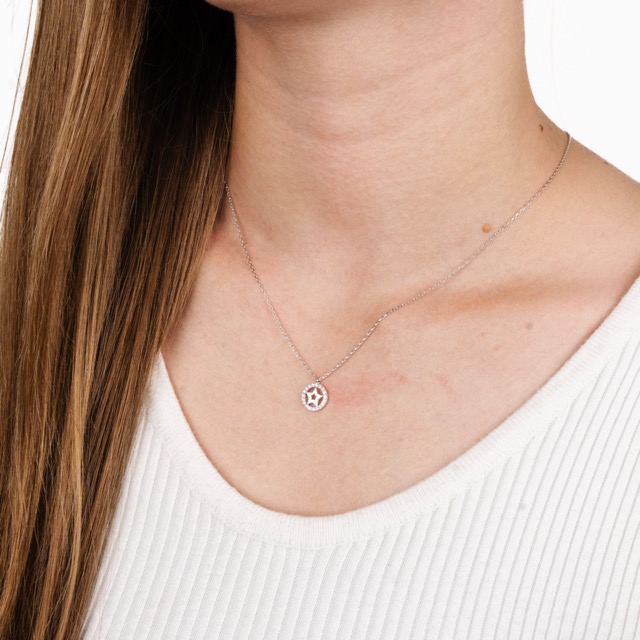 Silver Chain with Circle Pendant and Zirconium