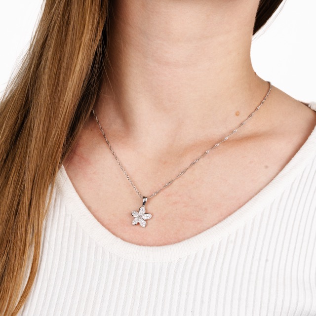 Silver Chain with Flower Pendant and Zirconium