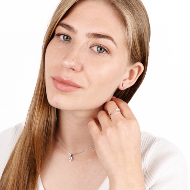 Silver Chain with Pendant and Ring Earrings with Zirconia