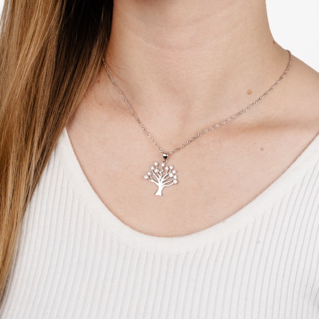 Silver Chain with Pendant Family Tree and Zirconium