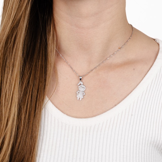 Silver Chain with Pendant Girl and Zirconium