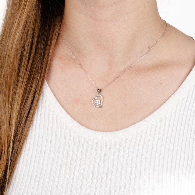 Silver Chain with Pendant Heart with Star and Zirconium