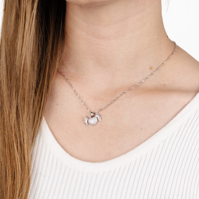 Silver Chain with Pendant Heart with Wings and Zirconia