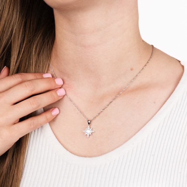 Silver Chain with Star Pendant and Zirconium