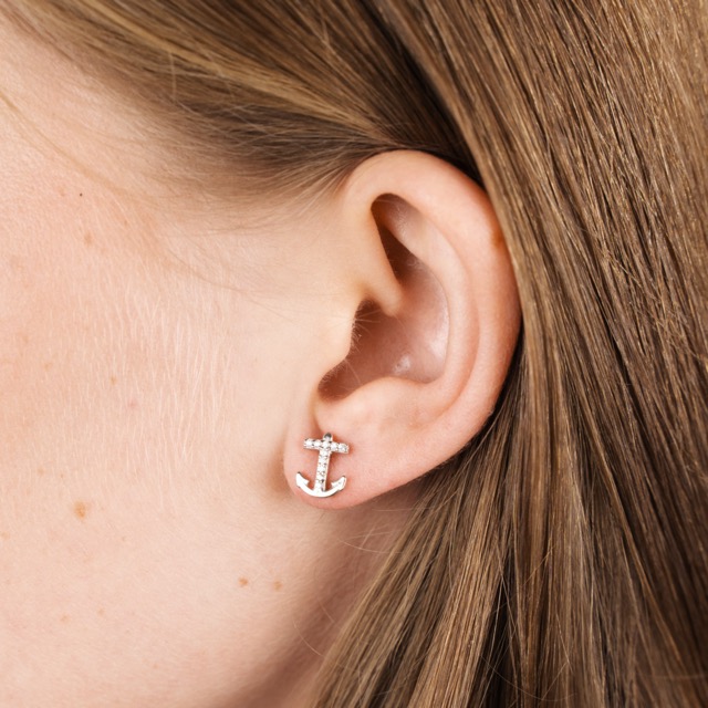 Silver Earrings Anchors with Zirconium