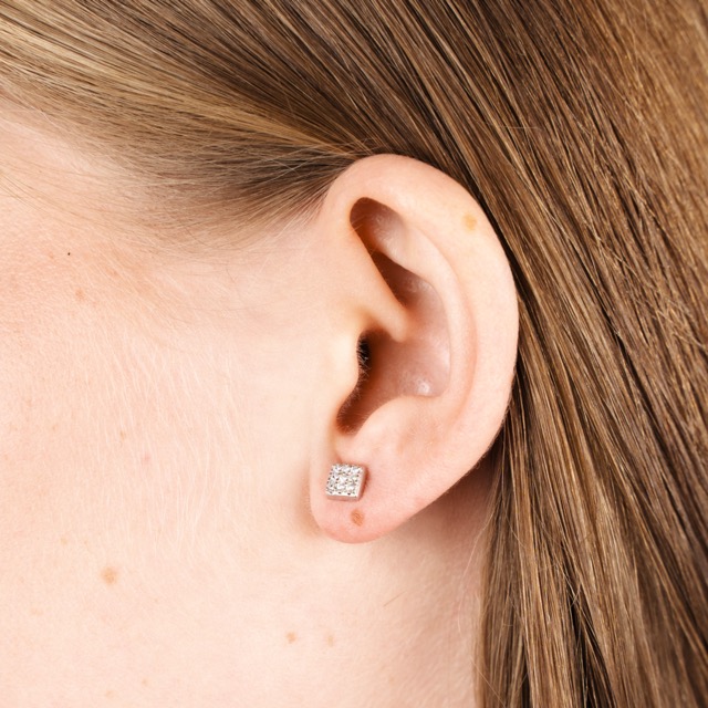 Silver Earrings Square with Zirconium