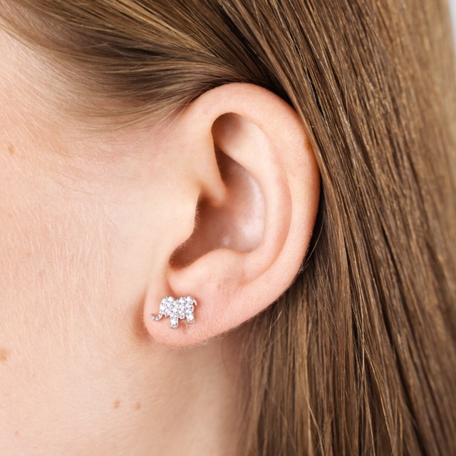 Silver Elephant Earrings with Zirconium