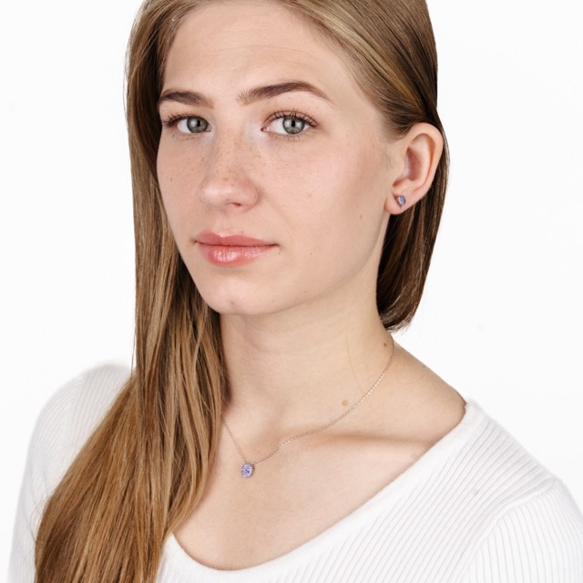 Silver Necklace with Pendant and Earrings with Zirconia