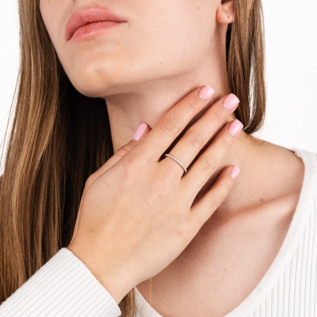 Silver Ring with Zirconia Gemstone Inserts Along the Bezel